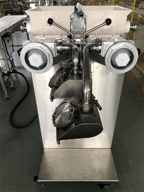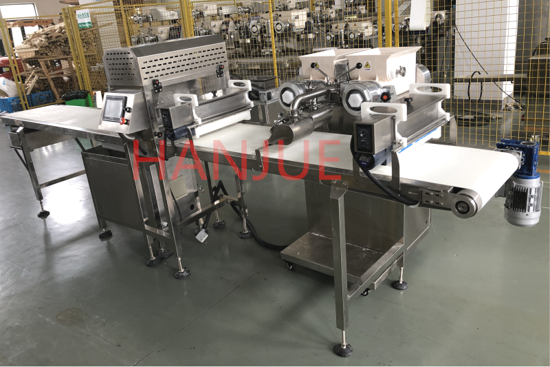 1) Instruction: The main machine structure is same with HJ-860 Encrusting machine, there has two hoppers, left one for dough, right one for filling.