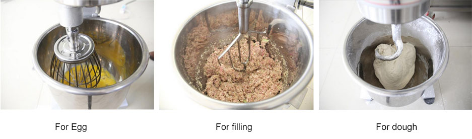 Description: Hanjue series egg mixers work in high performance. The agitator is designed to do planetary motion inside the bowl where the food can be fully blent. The machines are complete with 3 types of agitator and have 3 grades of speed for different mixing purposes like the flour mixing, stuff mixing, egg beating and etc.. All parts in contact with food are made of stainless steel or steel with specially treated surfaces, which are endurable in use and in conformity with national food hygiene standard.